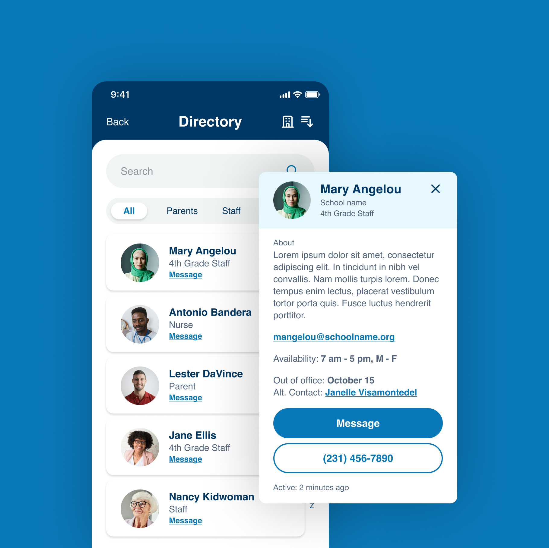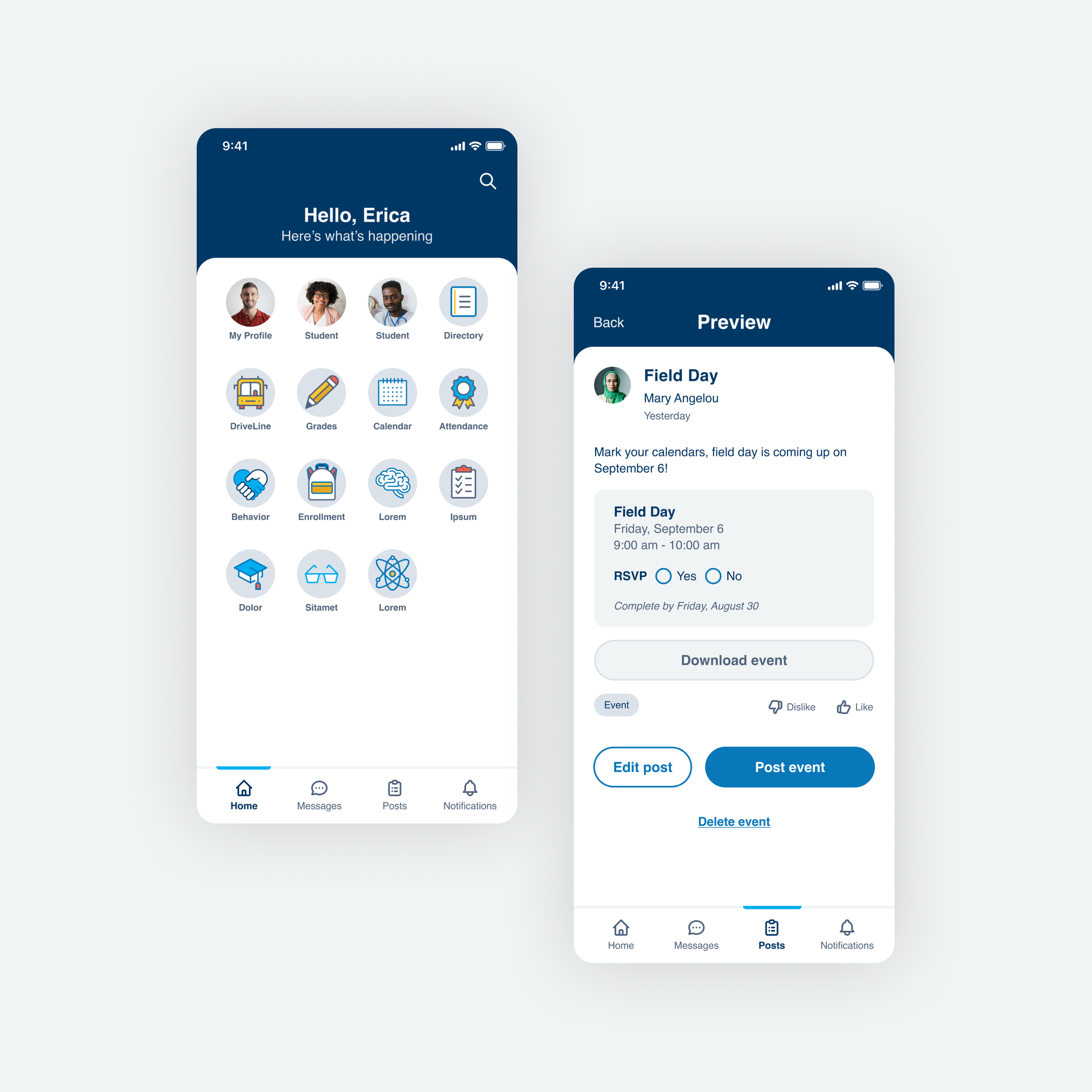 NHA hired me as a Contract Senior Product Designer for their communication app — the NHA app. The NHA app is designed to serve as a valuable resource for parents and administrators, allowing them to efficiently access student schedules, stay informed of school-wide announcements, and receive timely information through both the app and the opportunity to communicate with parents.
