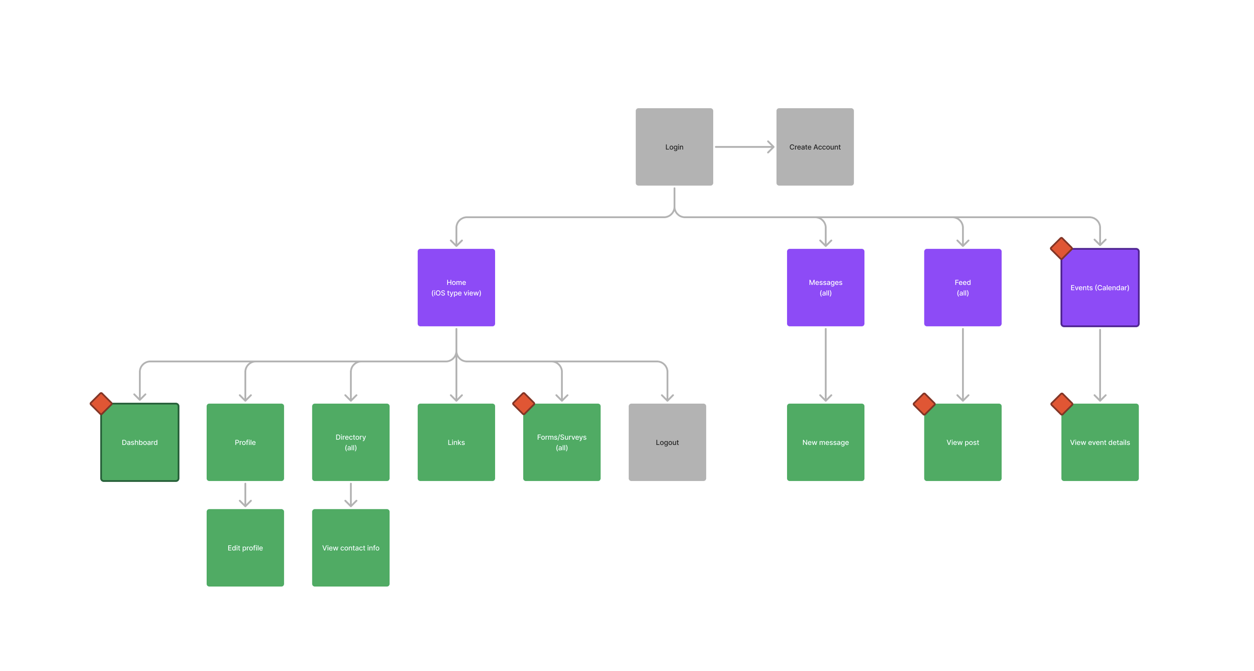 Building on insights gathered from user research, I focused on creating architecture, user flows, and wireframes for the NHA app that kept the core needs and pain points of users at the center of my design decisions. My goal was to align the experience with the key takeaways from the research while preserving the integrity of National Heritage Academy’s established branding, copy, and UI features.